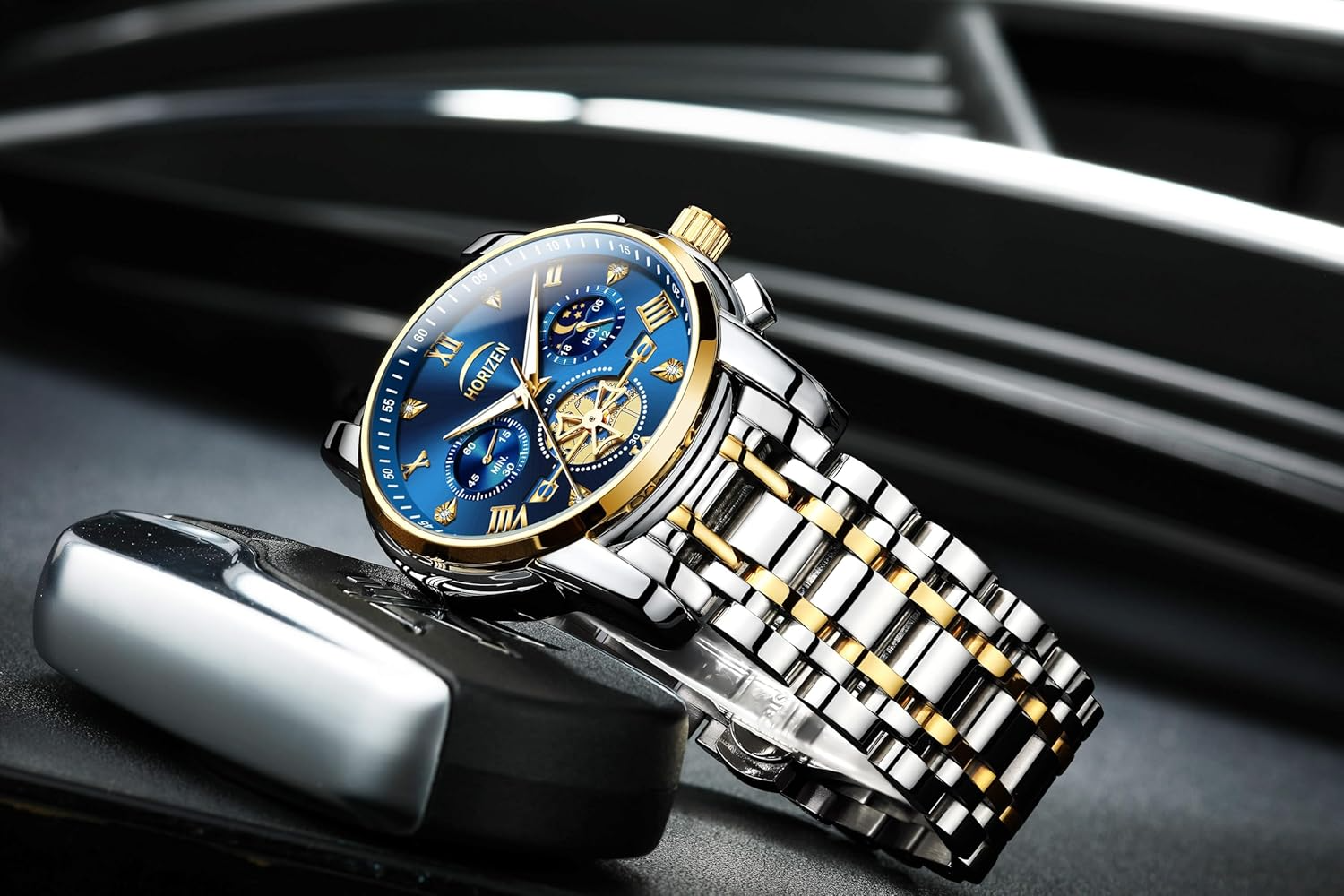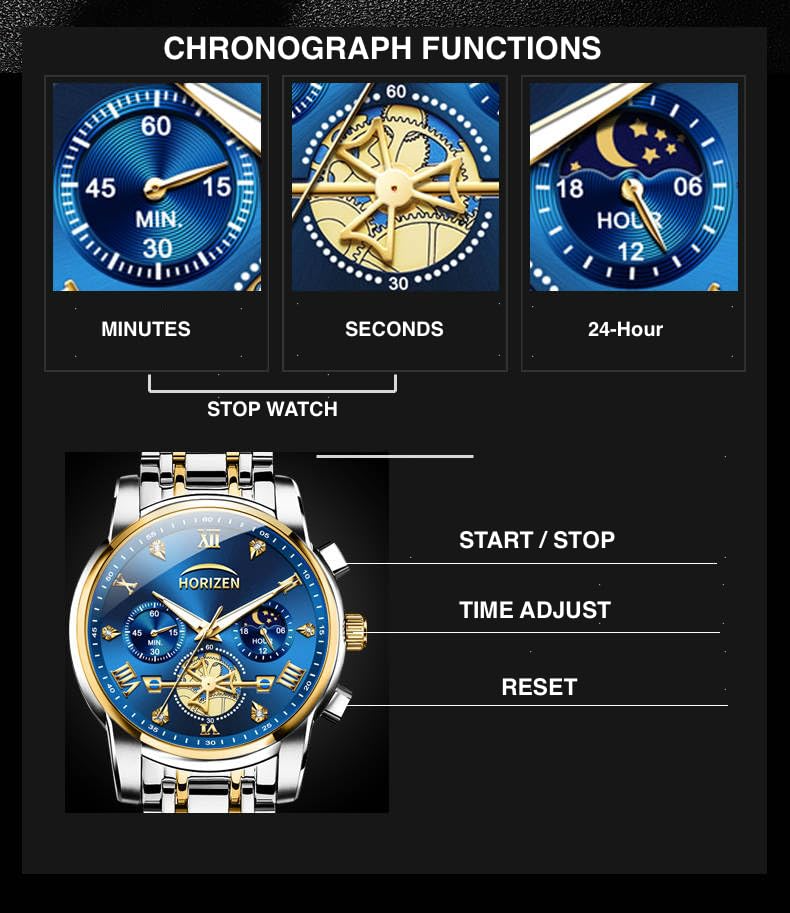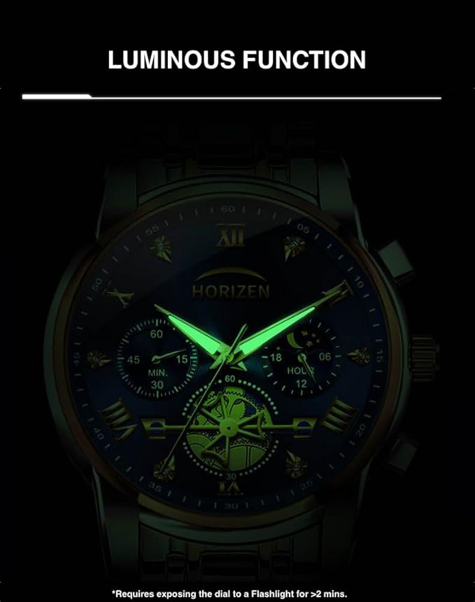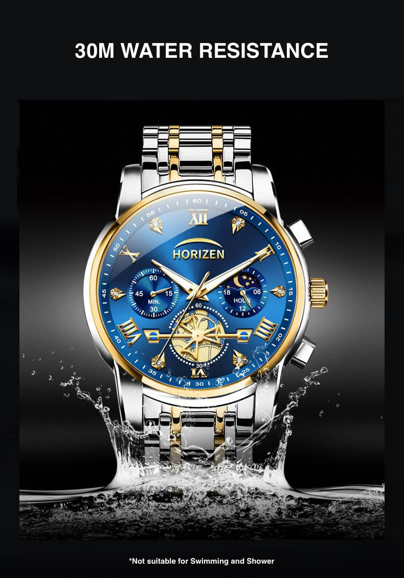 HORIZEN Stainless Steel Chronograph Luxury Analogue Watch for Men (Blue Dial)